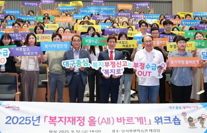 이태훈 달서구청장은 “복지재정의 올바른 집행은 구민의 삶과 직결되는 핵심 과제”라며 “이번 워크숍과 주간행사가 현장 역량을 높이고 심신을 돌보는 의미 있는 시간이 되길 바란다”고 말했다.