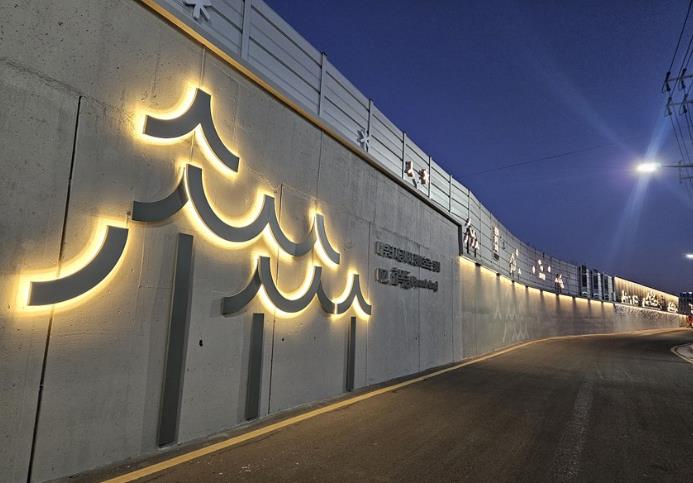 [파이낸셜경제=김지훈 기자] 대구 동구청은 최근 효목지하차도에서 효목네거리 방향으로 설치되어 있는 옹벽 및 방음벽에 공공디자인을 접목한 경관개선사업을 마무리했다.