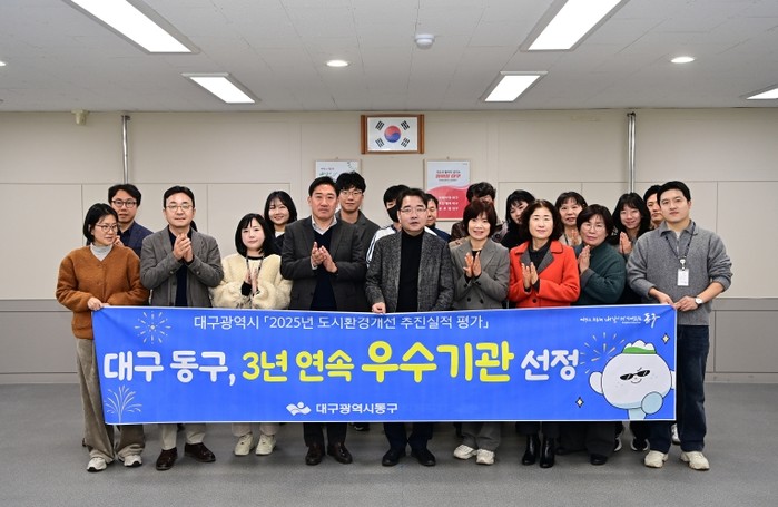 [파이낸셜경제=김지훈 기자] 대구 동구청이 ‘대구시 2025년 도시환경개선 추진 실적 평가’에서 우수기관으로 선정됐다. 2023년도 우수, 2024년도 최우수기관 선정에 이어 3년 연속 수상이다.