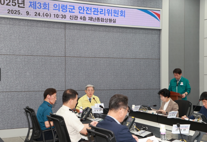 [파이낸셜경제=김예빈 기자] 의령군은 24일 제3차 안전관리위원회를 개최하여 다가오는 가을철 대형 축제의 안전관리 대책을 집중 논의했다고 밝혔다.