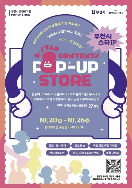 [파이낸셜경제=김기보 기자] 부천시는 10월 20일부터 26일까지 현대백화점 중동점 U-PLEX 1층에서 지역 우수 콘텐츠 기업 8개 사가 참여하는 팝업스토어 ‘8 CONTENTS, ONE STAGE in BUCHEON’을 운영한다.