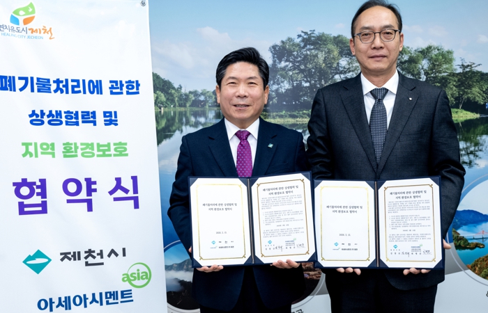 [파이낸셜경제=김기보 기자] 제천시와 아세아시멘트(주)제천은 13일 제천시청에서 ‘폐기물 처리에 관한 상생협력 및 지역 환경보호 협약’을 체결했다. 이번 협약은 수도권 종량제 생활폐기물의 제천시 반입을 차단하고 지역 환경 보호를 강화하기 위해 마련됐다.