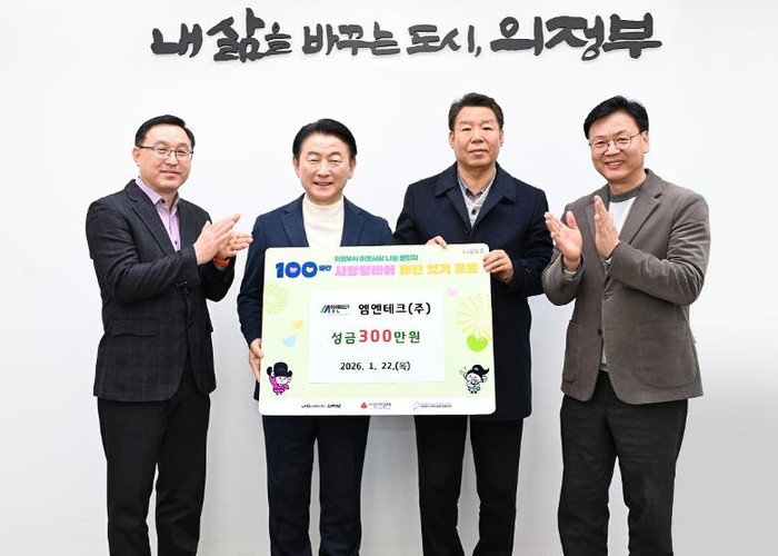 [파이낸셜경제=김기보 기자] 의정부시는 1월 22일 엠엔테크(주)가 관내 저소득층을 위해 성금 300만 원을 기부했다고 밝혔다.