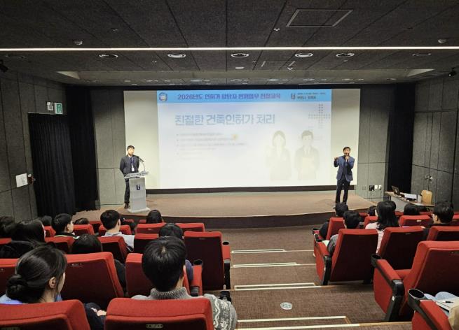 이번 교육은 실제 민원 현장에서 매뉴얼을 효과적으로 활용할 수 있도록 구성됐으며, △건축인허가 단계별 주요 검토 사항 △법령 해석과 판단 기준 △부서 간 협의 요령 △갈등 민원 발생 예방 방안 등을 중심으로 진행됐다. 실무자들이 민원 응대 과정에서 겪는 애로사항을 공유하고 해결 방안을 모색하는 시간도 마련됐다.