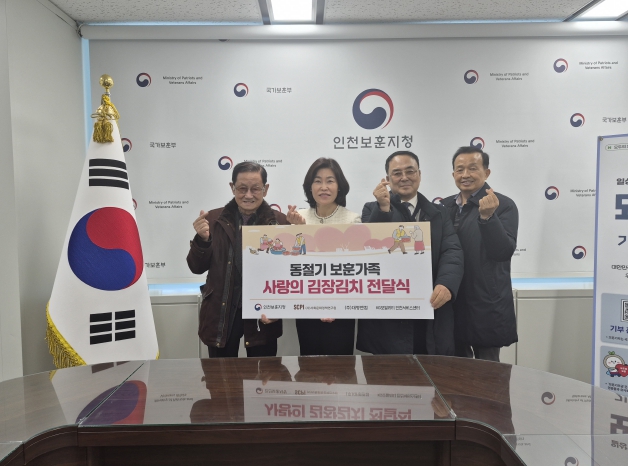 [파이낸셜경제=김기보 기자] 인천보훈지청은 12월 9일 겨레홀에서 사회문화 정책연구원 등 관내 3개 후원기관과 함께 동절기 보훈가족 사랑의 김장김치(1015kg, 145가구) 전달식을 개최했다.