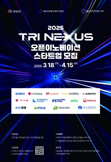 [파이낸셜경제=김영란 기자] (재)충남창조경제혁신센터는 대·중견기업(공기업)과 스타트업 간 오픈이노베이션을 통해 혁신기술의 산업 적용과 사업화를 지원하는 ‘2026 Tri Nexus 오픈이노베이션’ 프로그램에 참여할 스타트업을 오는 4월 15일까지 모집한다고 밝혔다.