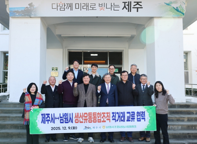 [파이낸셜경제=김영란 기자] 제주시는 12월 9일 시장 집무실에서 전라남도 남원시 지역농협 조합장 등과 함께 ‘농산물 직거래 확대를 위한 협력 간담회’를 개최했다.