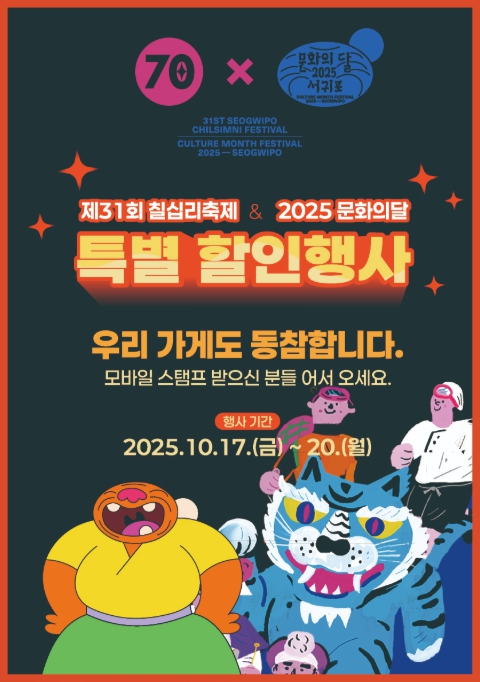 [파이낸셜경제=김영란 기자] 서귀포시는 ‘제31회 서귀포칠십리축제 & 2025 문화의달 행사’를 맞아 지역 상권 활성화를 위한 다양한 연계 이벤트를 운영한다고 밝혔다.