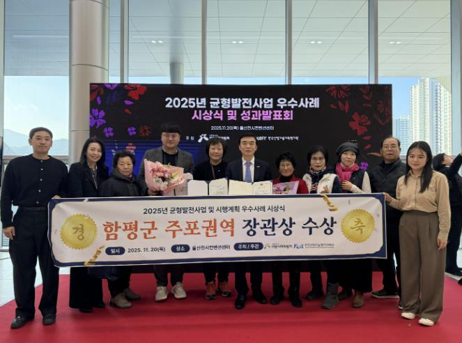[파이낸셜경제=김예빈 기자] 전남 함평군이 2025년 균형발전사업 우수사례 시상식’에서 3년 연속 우수사례 주민주도형 지역 발전 역량을 전국에 알렸다.