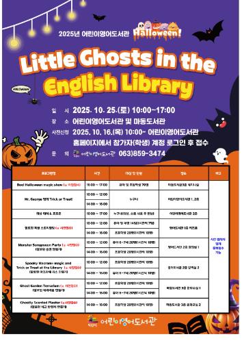어린이영어도서관은 오는 25일 오전 10시부터 오후 5시까지 핼러윈 행사를 진행한다고 14일 밝혔다.
