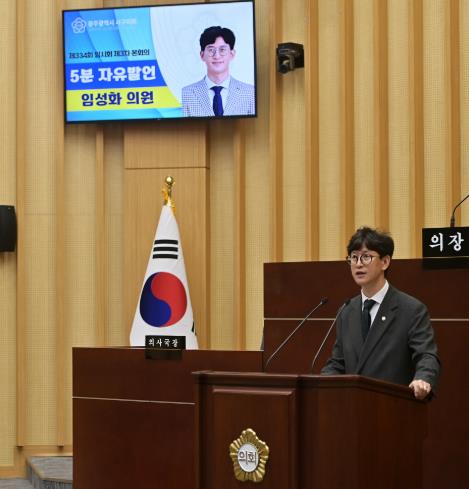 [파이낸셜경제=김예빈 기자] 광주 서구의회 임성화 의원이 24일 제334회 임시회 제3차 본회의에서 ‘5분 자유발언’을 통해 '4계절 쾌적한 착한 보행환경 조성을 위한 종합적인 방안'을 제안하며 적극적인 개선을 촉구했다.
