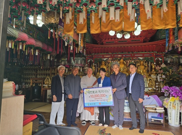 [파이낸셜경제=김예빈 기자] 남양주시 진건읍에 소재한 명덕사 주지 우정 스님이 오수면 지역 복지 사업을 위해 사용해 달라며 지난 17일 오수면에 1천만 원을 기탁했다.