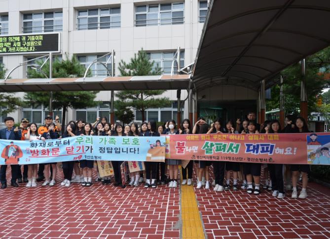 한창완 경산소방서장은 “학생들이 지닌 작은 관심과 실천이 우리 사회의 안전을 지켜내는 큰 힘이 된다.”며 “방화문을 닫는 습관이 여러분과 가족, 친구들의 생명을 지키는 가장 확실한 약속임을 꼭 기억해 주기를 바란다.”고 강조했다.