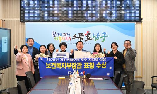 [파이낸셜경제=김예빈 기자] 광주 남구가 보건복지부 주관 ‘2025년 국민기초생활보장 분야 사업 평가’에서 우수기관으로 선정돼 보건복지부 장관상을 받았다.