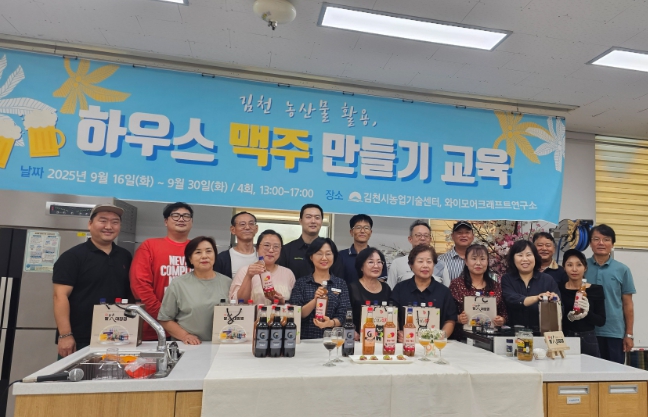 [파이낸셜경제=김지훈 기자] 김천시는 농업기술센터에서 9월 16일부터 총 4회에 걸쳐 김천 자두, 포도 등 지역 농산물을 활용한 '김천 농산물 활용, 하우스 맥주 만들기 교육'을 실시했으며, 지난 30일 수료식을 개최했다.