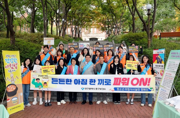 중구보건소는 2007년부터 매년 청소년들의 성장 발육 및 올바른 영양섭취를 위해 아침식사실천 캠페인을 실시해왔으며, 올해에는 계성중학교에서 청소년기 아침식사의 중요성을 알리며 아침 대용식을 개별 전달했다.