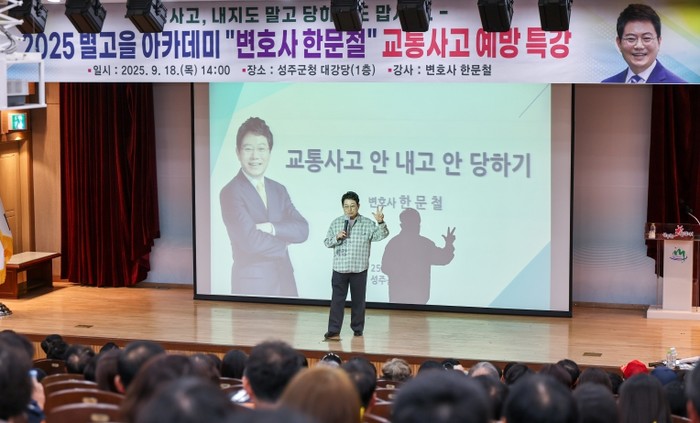 [파이낸셜경제=김지훈 기자] 성주군은 지난 9.18일 군청 대강당에서 군민, 공무원 등 250여명이 참석한 가운데 교통사고 전문 한문철 변호사를 초청하여『2025년 성주군 별고을 아카데미』를 개최했다.