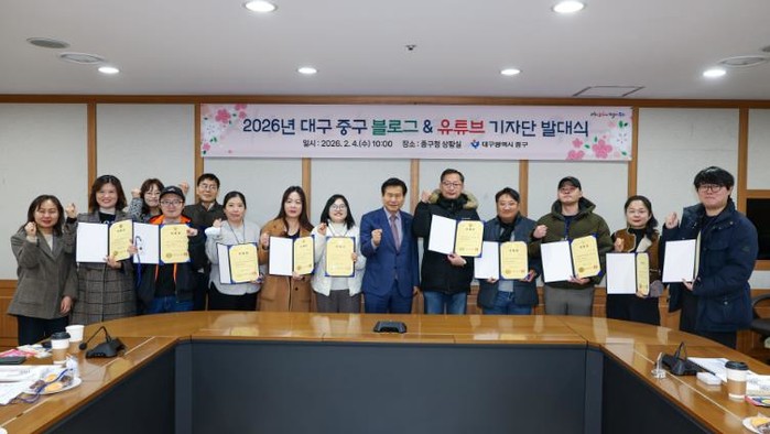 [파이낸셜경제=김지훈 기자] 대구 중구는 4일 구청 상황실에서 ‘2026년 블로그·유튜브 기자단 발대식’을 개최하고, 구정 홍보 활성화를 위한 본격적인 활동에 들어갔다.