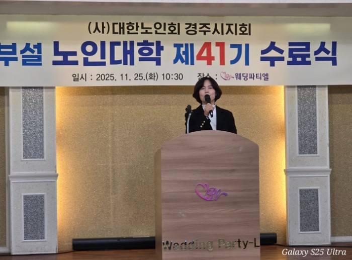 [파이낸셜경제=김지훈 기자] 경주시는 대한노인회 경주시지회 부설 ‘경주시 노인대학 제41기 수료식’이 지난 25일 오전 11시 웨딩파티엘에서 성황리에 열렸다고 밝혔다.
