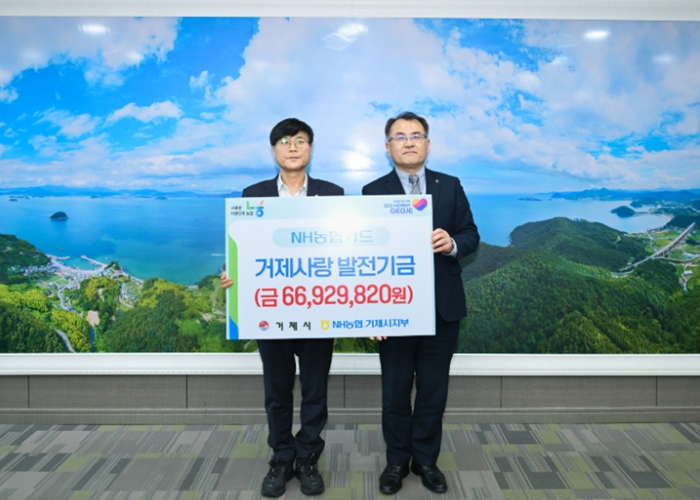 [파이낸셜경제=김예빈 기자] 거제시는 2월 23일 NH농협은행 거제시지부로부터 2025년도 NH농협카드 이용에 따른 제휴카드 적립 기금 66,929,820원을 전달받았다고 밝혔다.