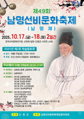[파이낸셜경제=김영란 기자] 산청군은 오는 17~18일 시천면에 위치한 한국선비문화연구원에서 ‘제49회 남명선비문화축제’를 개최한다고 14일 밝혔다.
