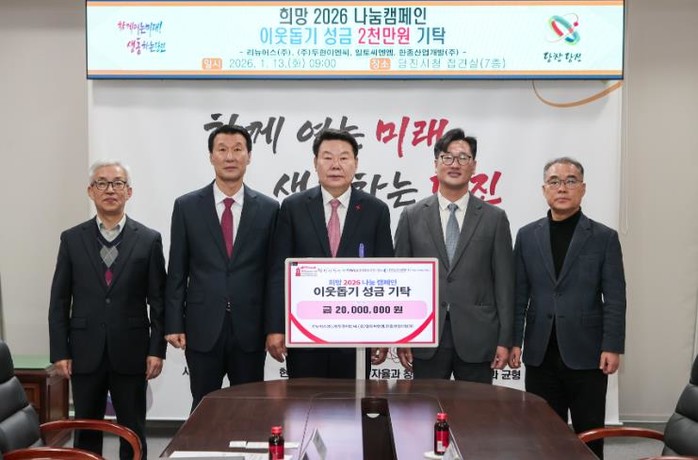 기업별 기탁 금액은 리뉴어스㈜와 ㈜두현이엔씨가 각 600만 원, 유한회사 일토씨엔엠과 한종산업개발㈜가 각 400만 원이다.