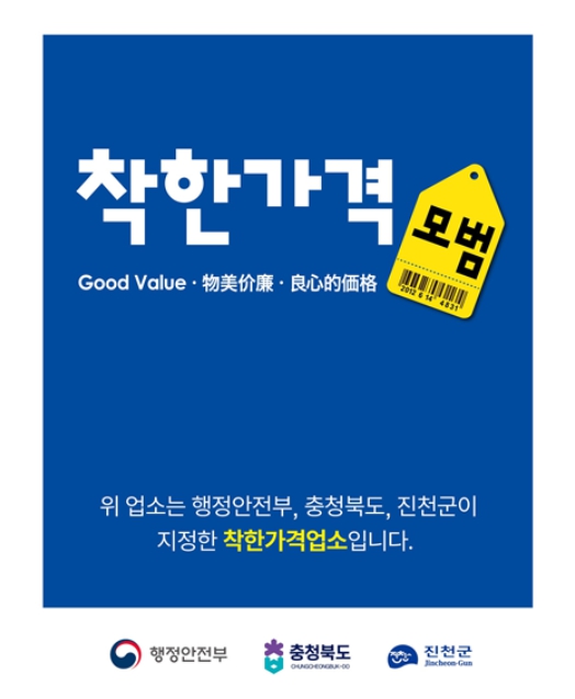 착한가격업소는 고물가에도 가격 상승을 억제한 착한가격과 품질 좋은 서비스를 제공하는 업소로, 행정안전부의 기준에 따라 지자체가 지정한 물가안정 모범업소이다.