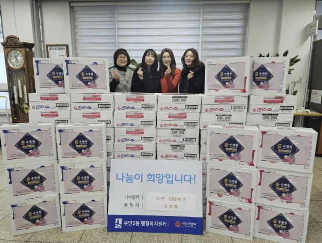 | ▲ 수병원, 설 명절 맞아 수원시 팔달구 우만2동에 라면 200박스 후원하며 온정 나눠 |