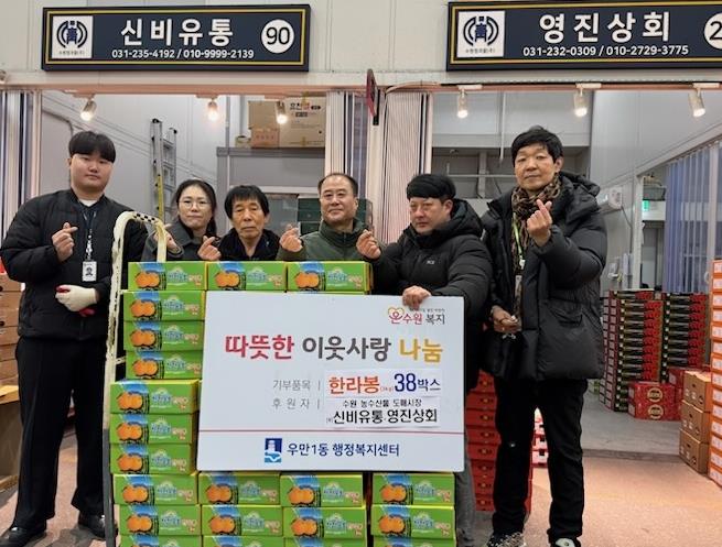 [파이낸셜경제=김기보 기자] 수원 농수산물도매시장 내 신비유통‧영진상회에서 설 명절을 앞두고 우만동 이웃들에게 따뜻한 정을 전했다고 밝혔다.