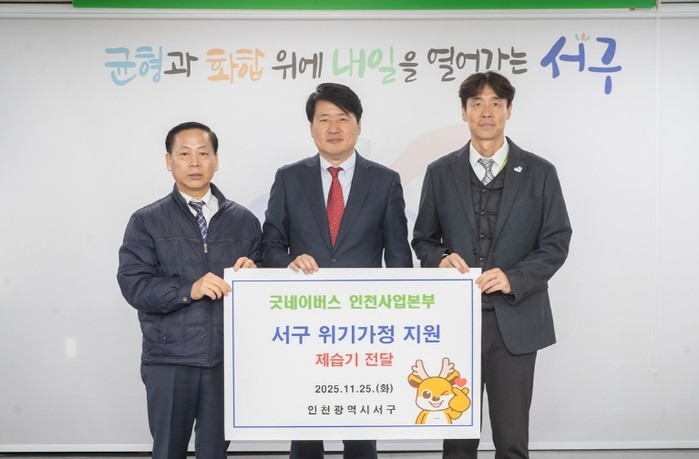 [파이낸셜경제=김기보 기자] 인천 서구는 지난 25일 굿네이버스 인천사업본부(홍상진본부장)으로부터 제습기 24대를 전달받았다.