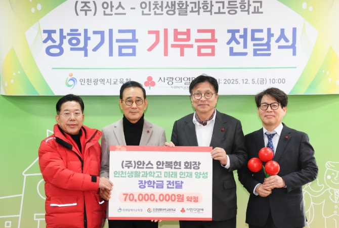 [파이낸셜경제=김기보 기자] 인천광역시교육청은 5일 ‘㈜안스–인천생활과학고 장학기금 전달식’을 열고 지역 기업과의 협력을 기반으로 직업계고 인재 양성 지원을 강화했다.