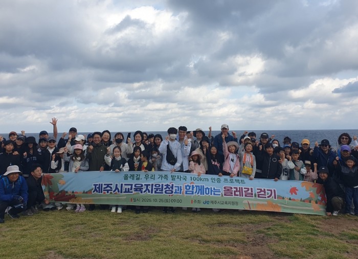 [파이낸셜경제=김영란 기자] 제주시교육지원청은 25일 제주시 용담동 어영공원에서 김만덕기념관까지 이어지는 올레길 17코스 일부 구간에서 학생과 보호자, 교육지원청 직원 등 100여 명이 참여한 ‘지원청과 함께하는 올레길 걷기’ 행사를 개최했다.