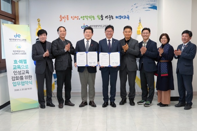 [파이낸셜경제=김영란 기자] 제주특별자치도교육청은 20일 제주특별자치도노인복지시설협회와 ‘효·예절 교육으로 인성교육 강화를 위한 업무협약’을 체결했다.
