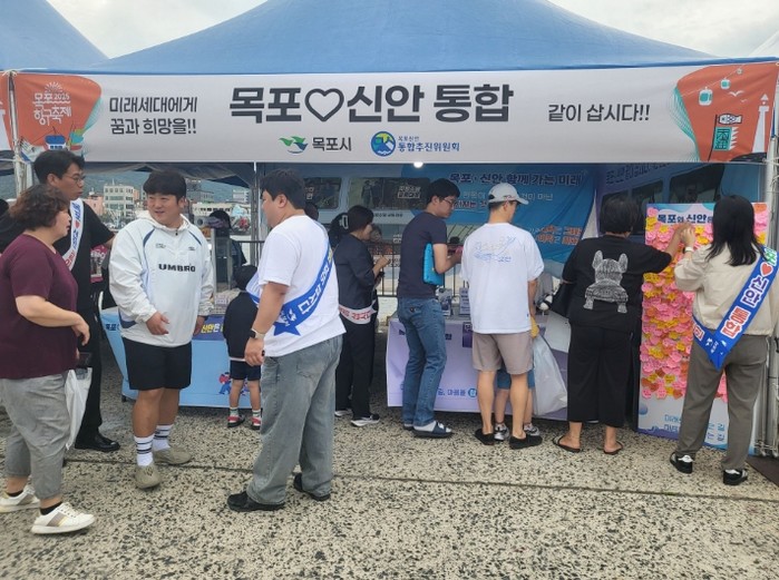 홍보부스를 찾은 시민과 축제 참가자들은 통합의 필요성과 기대 효과에 대한 설명을 듣고, “목포신안 같이 삽시다!”, “지역 미래를 살리는 길, 목포신안 통합” 등 희망 메시지 작성을 통해 통합에 대한 지지와 공감을 표현했다.