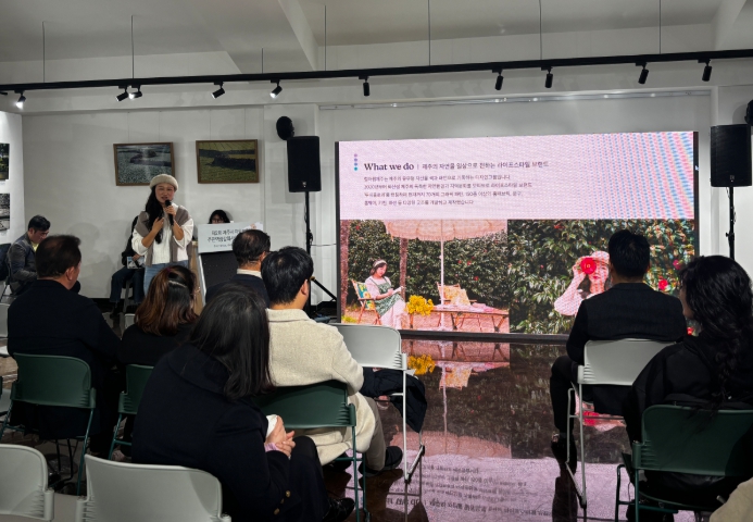 1부 행사에서는 컬러랩제주 김명은 대표가 강연자로 나서 마을의 자연과 일상에 담긴 색을 활용한 마을 정체성 스토리텔링 기법에 대해 특강을 진행했다.