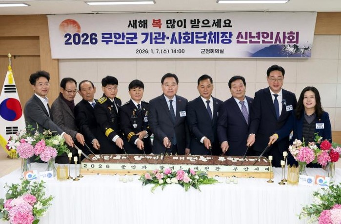 이날 행사에는 김산 무안군수를 비롯해 군의회 의장, 도의원, 군내 각급 기관·사회단체장 등 100여 명이 참석해 새해 인사를 나누고, 무안군의 발전과 번영을 함께 기원했다.