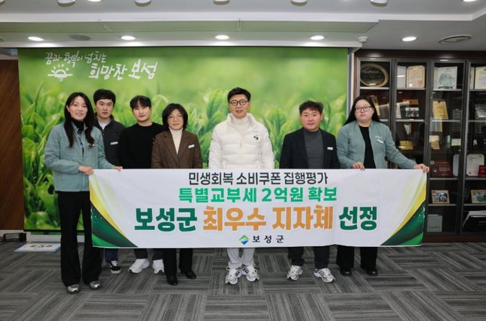| ▲ 보성군은 행정안전부가 주관한 ‘민생회복 소비쿠폰 집행 우수 지자체 평가’에서 최고 등급인 ‘가등급’에 선정돼 인센티브로 특별교부세 2억 원을 확보했다고 밝혔다 |