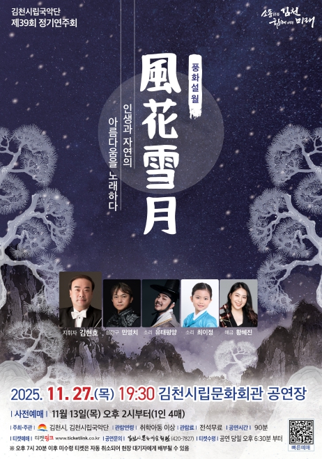 [파이낸셜경제=김지훈 기자] 김천시문화예술회관은 11월 27일 목요일 오후 7시 30분에 시립문화회관 공연장에서 시립국악단 제39회 정기연주회를 개최한다.