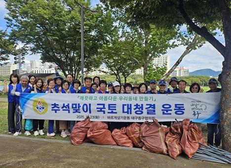 [파이낸셜경제=김지훈 기자] 바르게살기운동 대구동구협의회는 지난 23일, 동촌유원지 일대에서 추석 맞이 국토대청결운동을 실시했다.