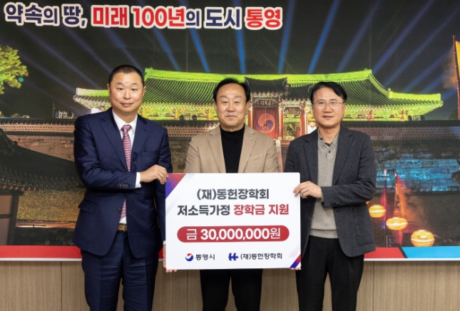 | ▲ 재단법인 동헌장학회, 통영시에 저소득가정 학업지원 장학금 3,000만원 기탁 |