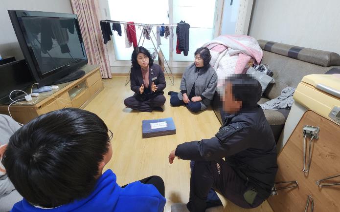 | ▲ 김선희 노인여성아동과장이 드림스타트 지원 아동 가정을 방문해 가족을 격려하고 있다. |