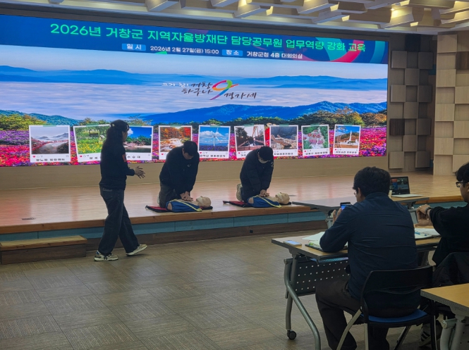[파이낸셜경제=김예빈 기자] 거창군은 지난 27일, 군청 대회의실에서 지역자율방재단 업무담당자 20명을 대상으로 2026년 지역자율방재단 담당 공무원 역량 강화 교육을 실시했다.