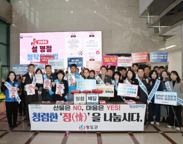 한편, 청도군은 이번 캠페인 외에도 설 명절 기간 공직기강 확립을 위한 자체 점검을 강화하는 등 청렴도 향상을 위한 다양한 시책을 지속적으로 추진할 계획이다.