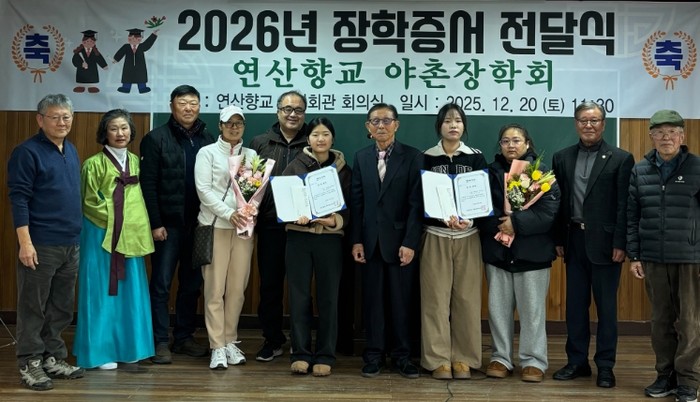 연산향교 관계자는 “야촌장학회는 지역 사회의 교육 발전과 인재 양성에 꾸준히 기여해 왔다”며 “앞으로도 지속적인 장학사업을 통해 지역의 미래 인재들이 꿈을 키워갈 수 있도록 적극 지원하겠다”고 전했다.