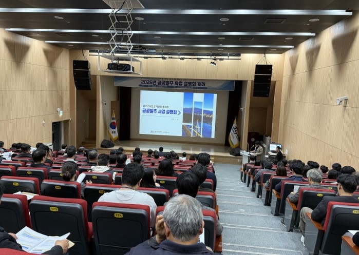 [파이낸셜경제=김영란 기자] 서귀포시에서는 침체된 건설경기 활성화의 발판을 마련하고자 대한건설협회(전문포함) 회원 및 건설업 면허 등록업체 종사자 등 100여 명이 참석한 가운데 ‘'26년도 공공발주 사업 설명회’를 1월 16일 14시에 서귀포시청 별관 2층 문화강좌실에서 개최했다.