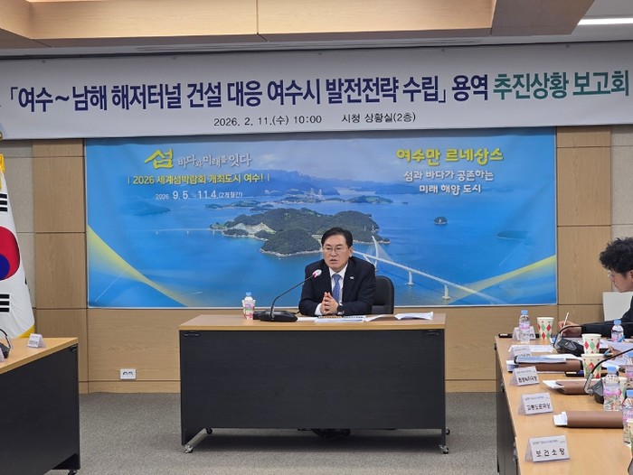[파이낸셜경제=김예빈 기자] 여수시는 여수~남해 해저터널 건설에 선제적으로 대응하기 위해 여수시 발전전략 수립 용역의 추진 상황을 점검하고 관계부서 의견을 수렴하기 위한 보고회를 개최했다.