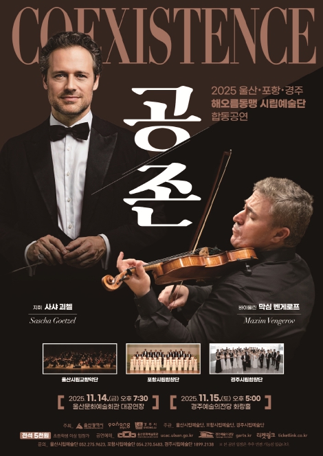 [파이낸셜경제=김지훈 기자] 울산광역시가 주관하는 ‘2025 해오름동맹 시립예술단 합동공연 '공존(COEXISTENCE)'’이 11월 14일 울산문화예술회관 대공연장, 11월 15일 경주예술의전당 화랑홀에서 잇따라 열린다.