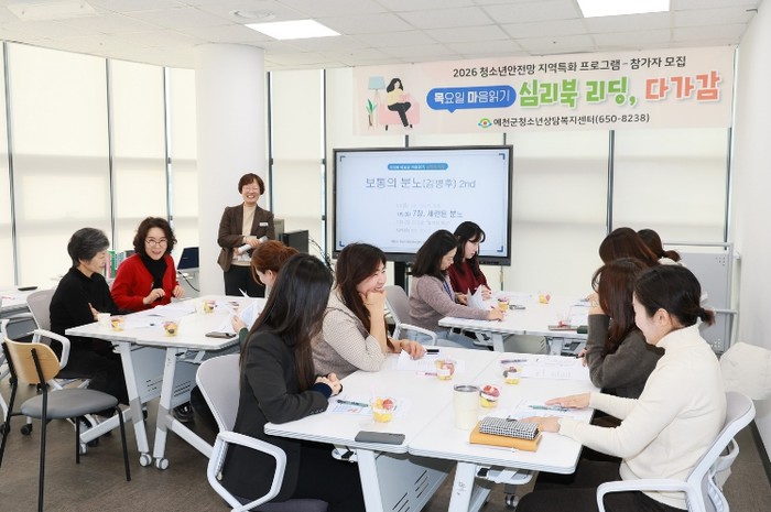 [파이낸셜경제=김지훈 기자] 예천군은 15일부터 매주 목요일, 학부모의 마음 건강 증진과 위기청소년 조기 발견을 위한 '목요일 마음읽기 – 심리북 리딩, 다가감(茶加感)' 프로그램을 운영한다고 밝혔다.