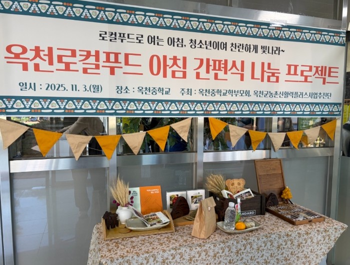 [파이낸셜경제=김기보 기자] 옥천군이 11월 3일 옥천중학교 학생을 대상으로 ‘옥천 청소년 로컬푸드 아침 간편식 나눔 프로젝트’ 행사를 실시했다.
