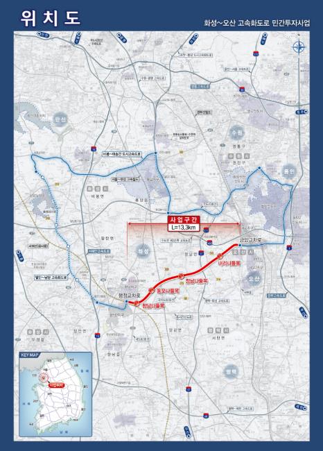 | ▲ 화성~오산 고속화도로 민간투자사업 위치도 |